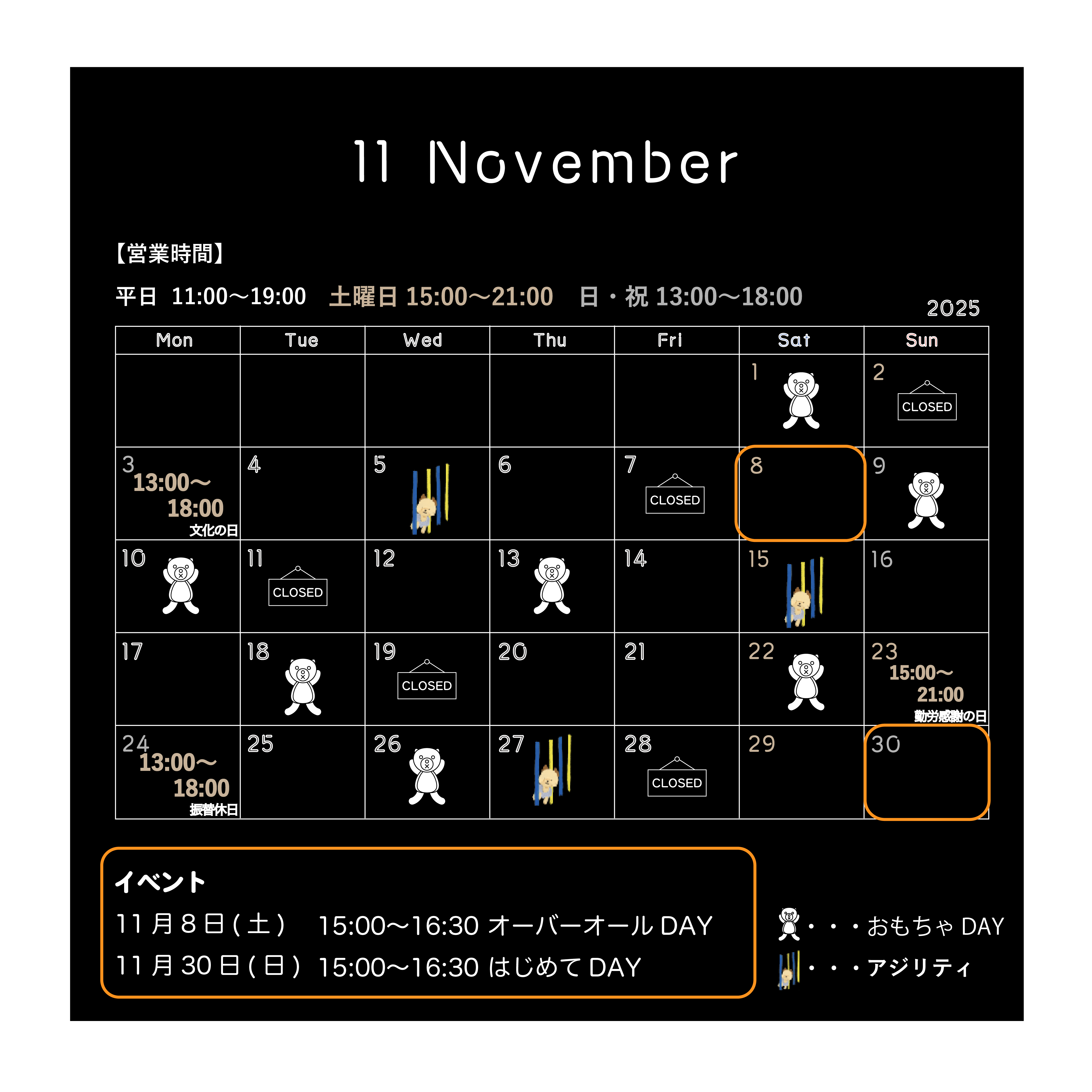 11月のスケジュールを公開しました